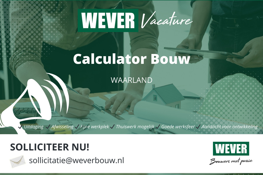 Zie jij jezelf werken als calculator bij Wever Bouwgroep? Stuur dan je CV en motivatie naar